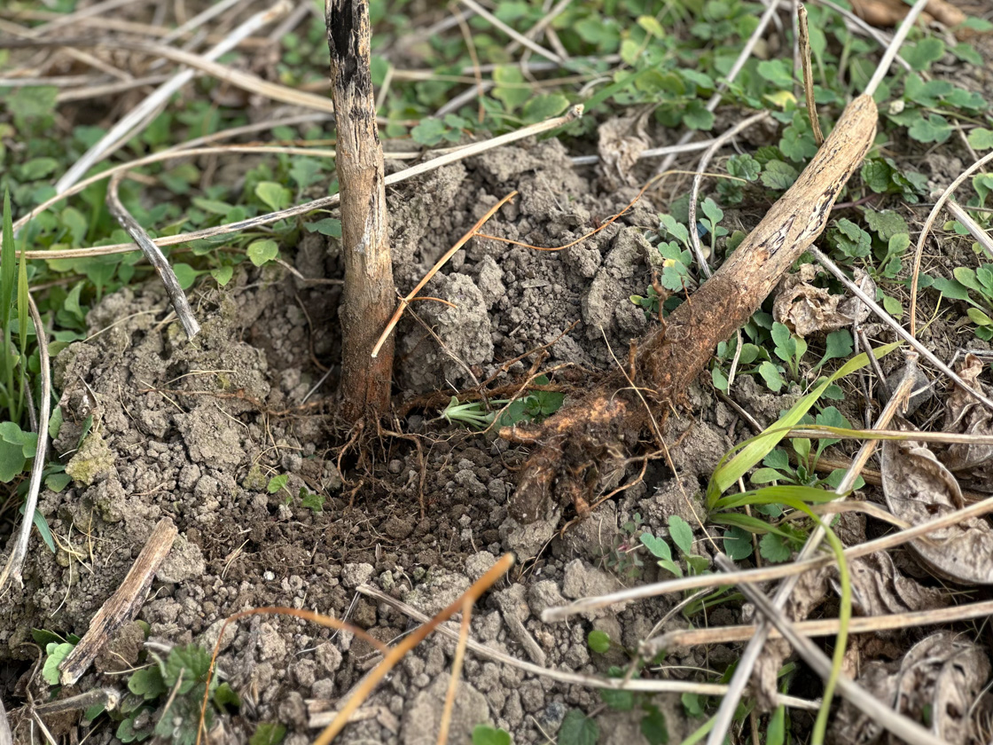 成長していた時期にできた、地中深くの根っこは微生物によって分解され、腐植となって次の作物の栄養となります。分解されてなくなった根っこの細い通り穴によって水捌けも良くなり、微生物たちのコロニーに大きく役立ち、やがてそれらは次の作物に役立つのです。
