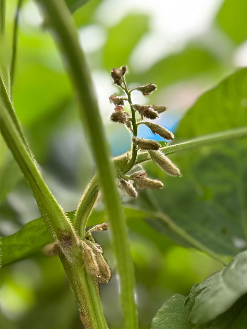 一般的に大豆栽培は手がかからない作物ですが、昨年の夏は雨がほとんど降らないという気候変動に見舞われたため、深刻な水不足が心配されました。水分の多い土壌を好む大豆ですが、特に、花の咲いた頃からサヤが出来始めるときが、一番水分が必要なのだそうです。