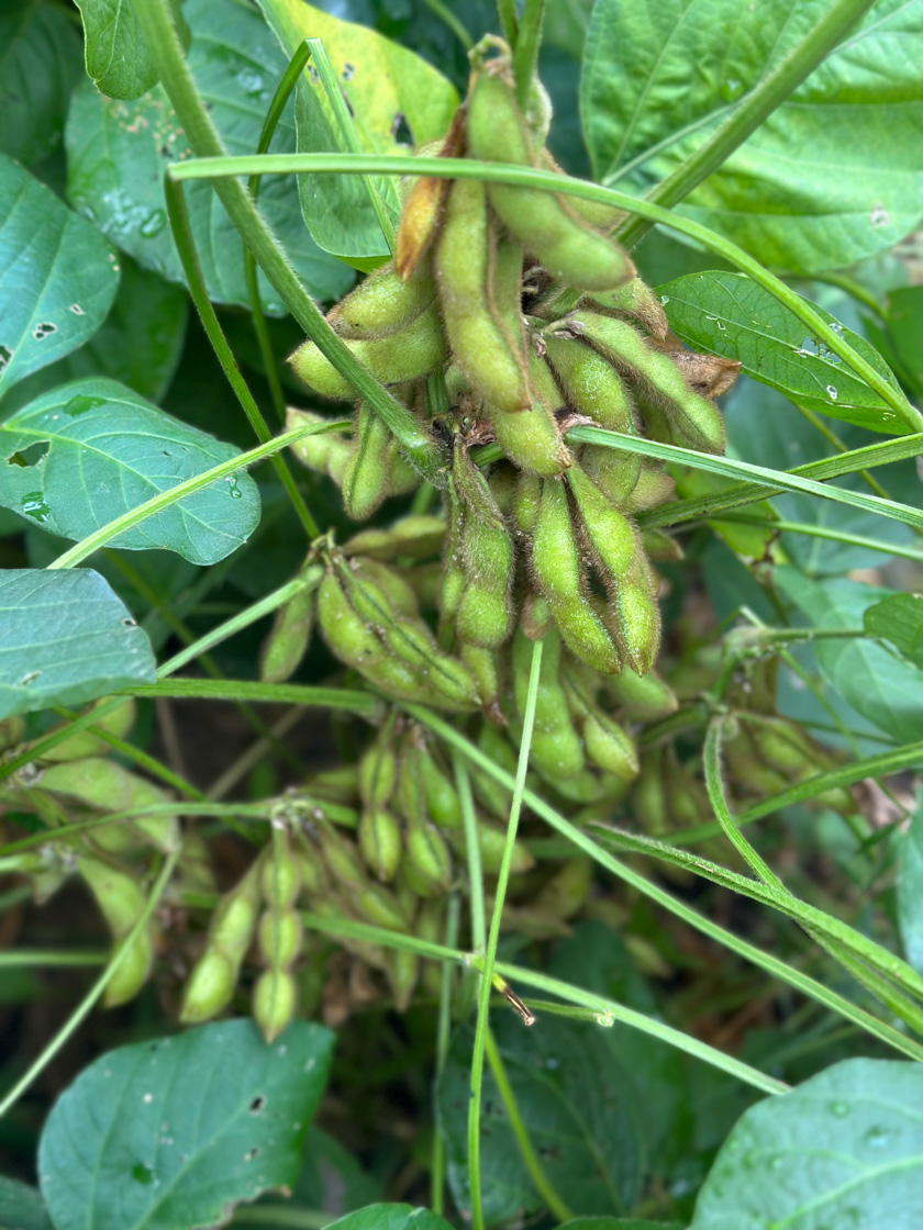 すでに素晴らしい素材なのですが、畑を楽しんでいる身としては素材の大豆をどうしても作ってみたい!と思い…2年前から大豆を作り始めました。難しくはないと言われる大豆栽培。夏の枝豆が比較的簡単なものですからその延長線だと思いきや…いざ作ってみると栽培時期は酷暑の真っ只中、水分不足や害虫(カメムシ)のおかげで実がほとんど膨らまず失敗が続いてしまいました。
