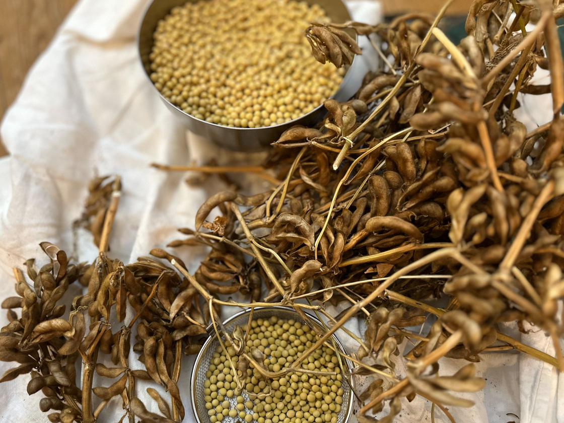 来季の種用として少し大豆を残しておきました。今年もまた7月に種をまき、厳しい夏をどう乗り切るか、畑と向き合ってみようと思います。