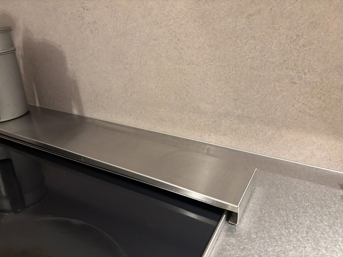 水返しを無くすことで、天板からキッチンパネルの間はコーキングしか存在しないのでスッキリとした印象になります。