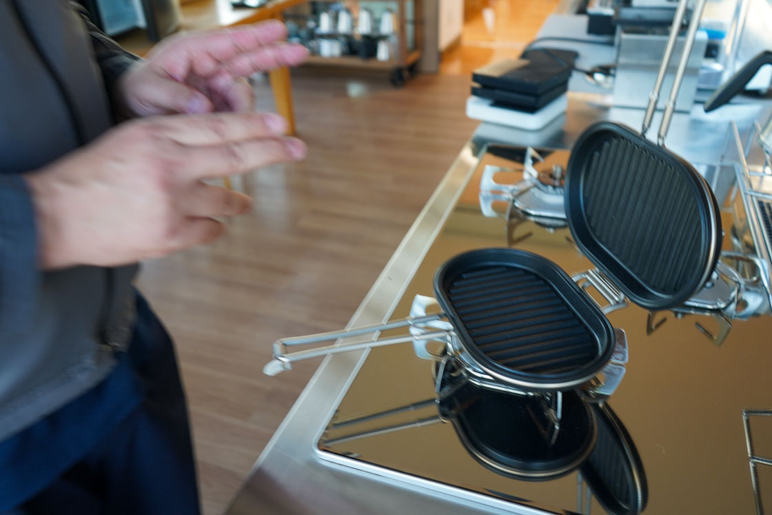 久保寺:これ、実は開発に2年くらいかかったんです。直火を当てる過酷な使用環境で、変形を防ぐこと、かつ焦げ付きにくく、手入れもしやすい構造で。それでいて、プロ並みの仕上がりの成功体験も提供したいので。